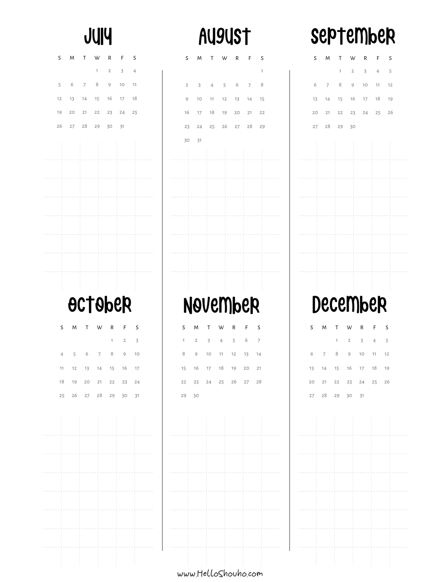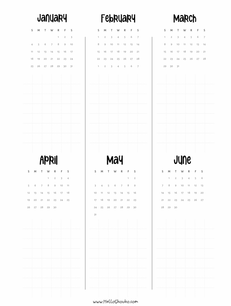 This year I’ve decided to post straight up versions of the dated calendars for people to use as they please. I am sharing them in both vertical and horizontal, as well as some easy to use at a glance pages. I also included my short future planning pages – these are great for planning events and holidays – but they have 6 months on a page so it takes up a bit less space depending on how busy you are.