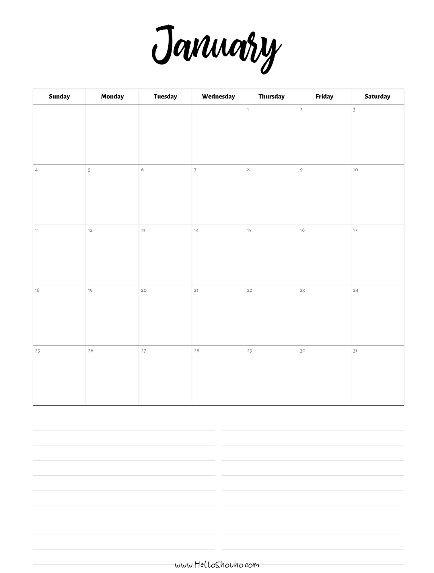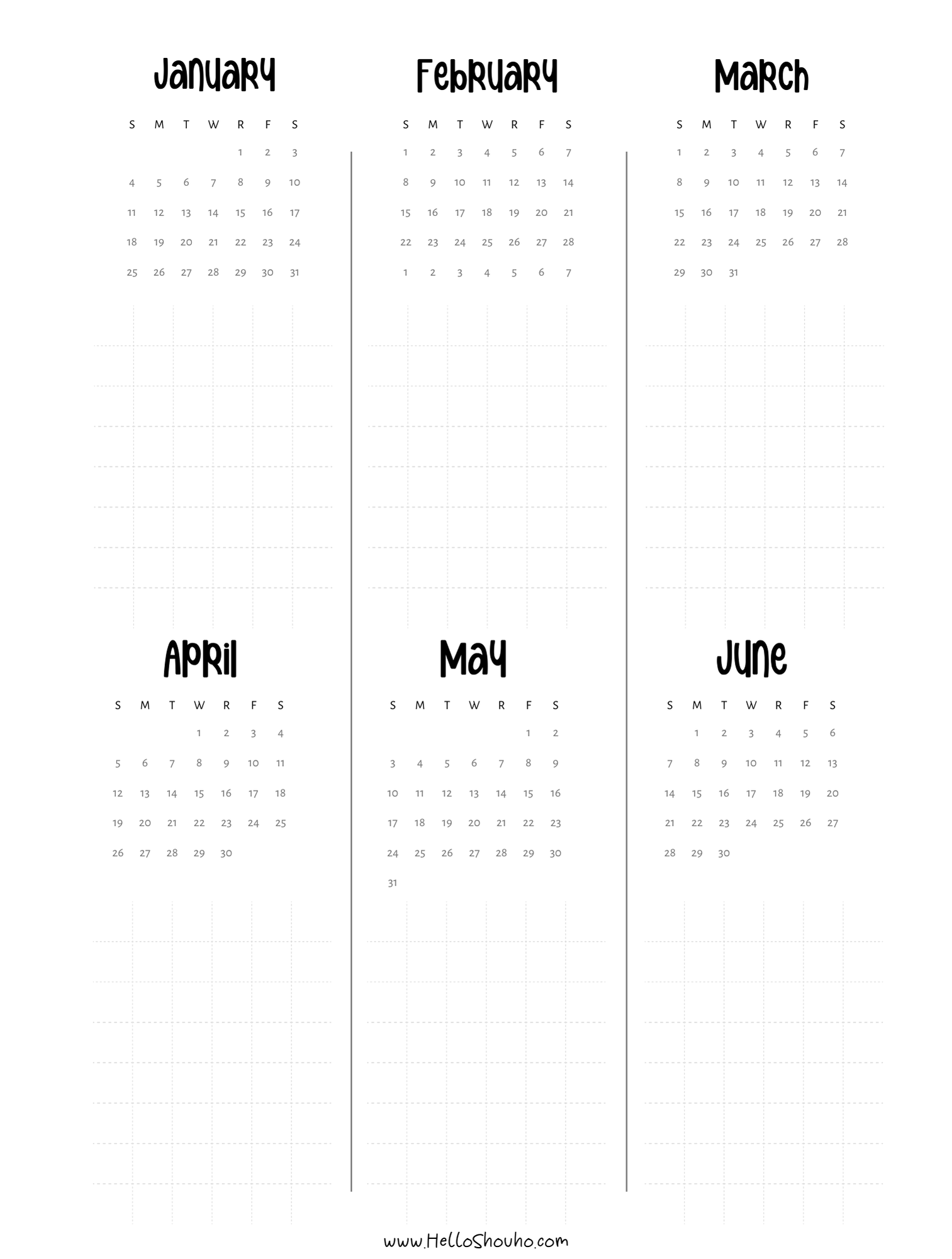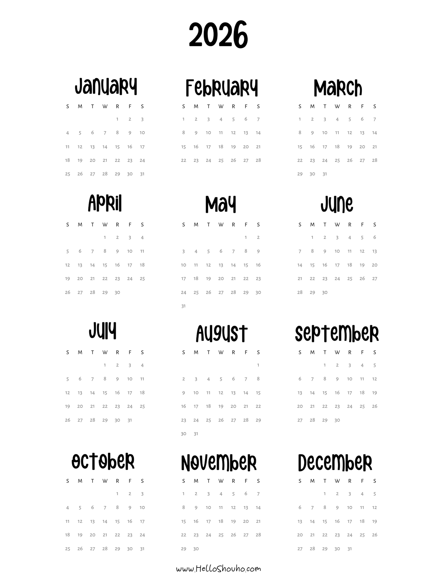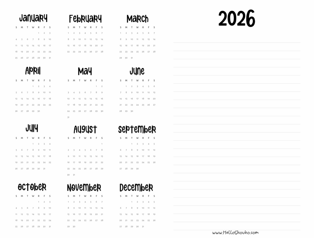2026 Horizontal Calendars