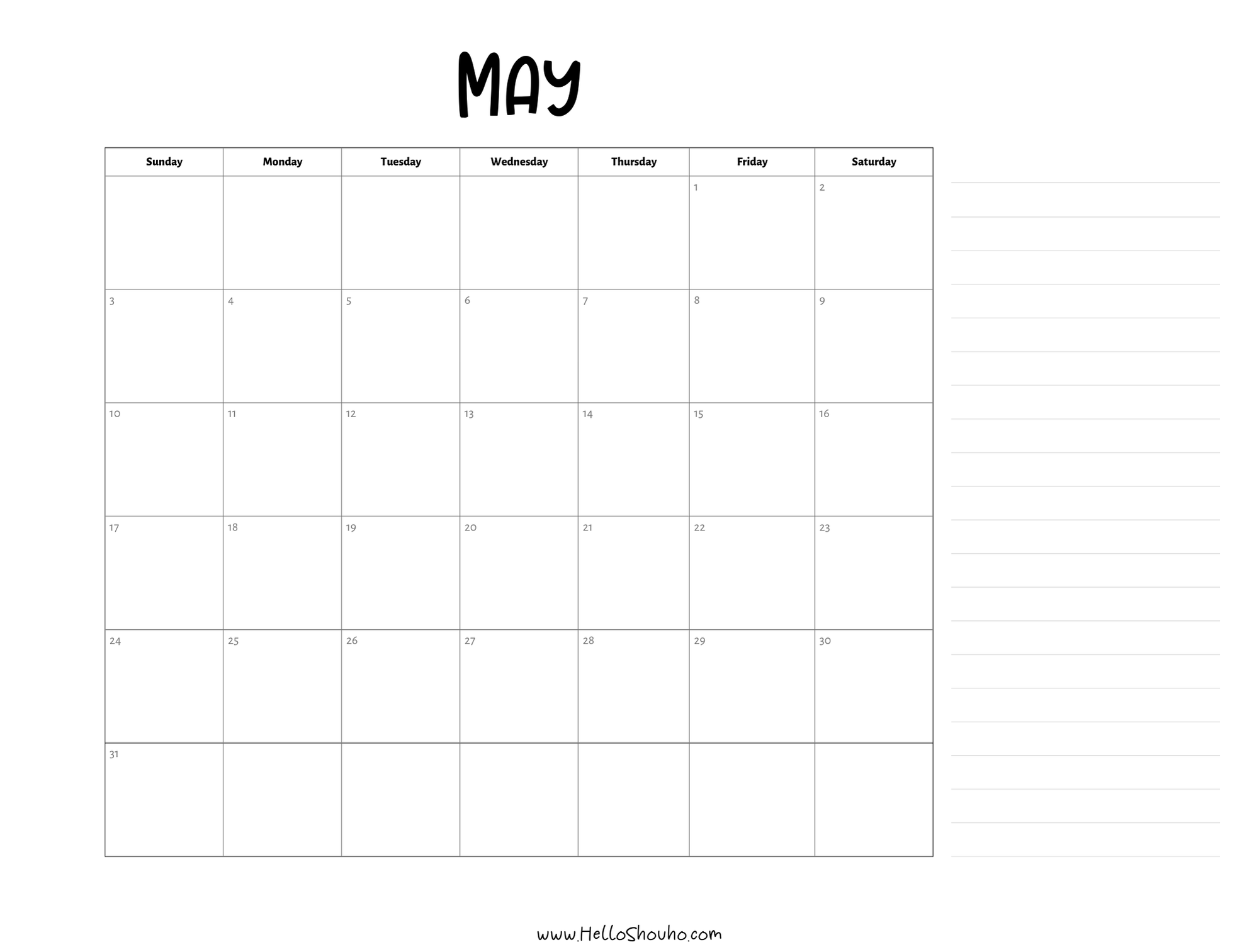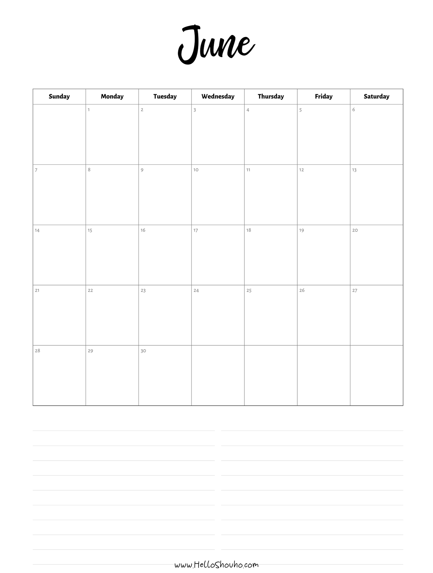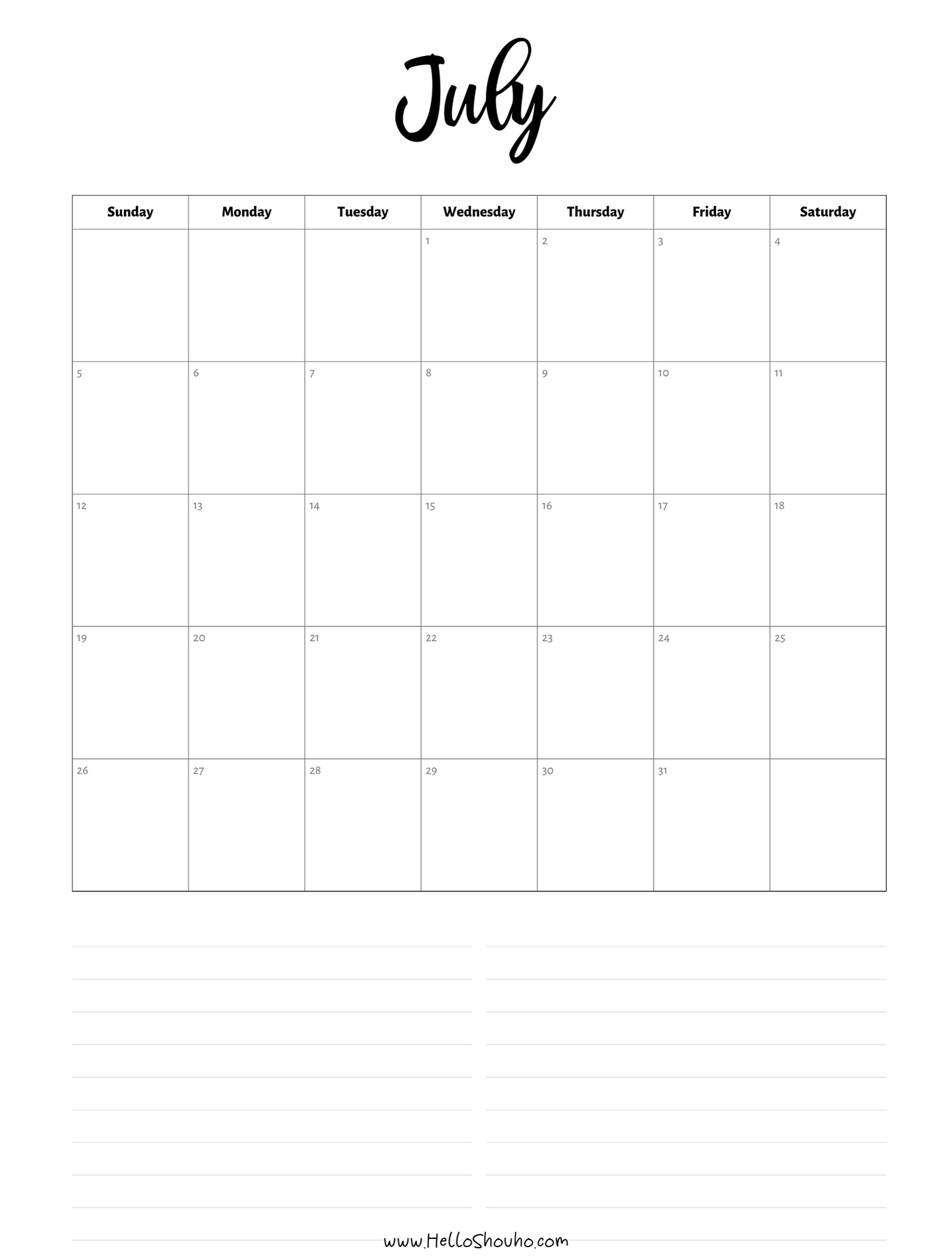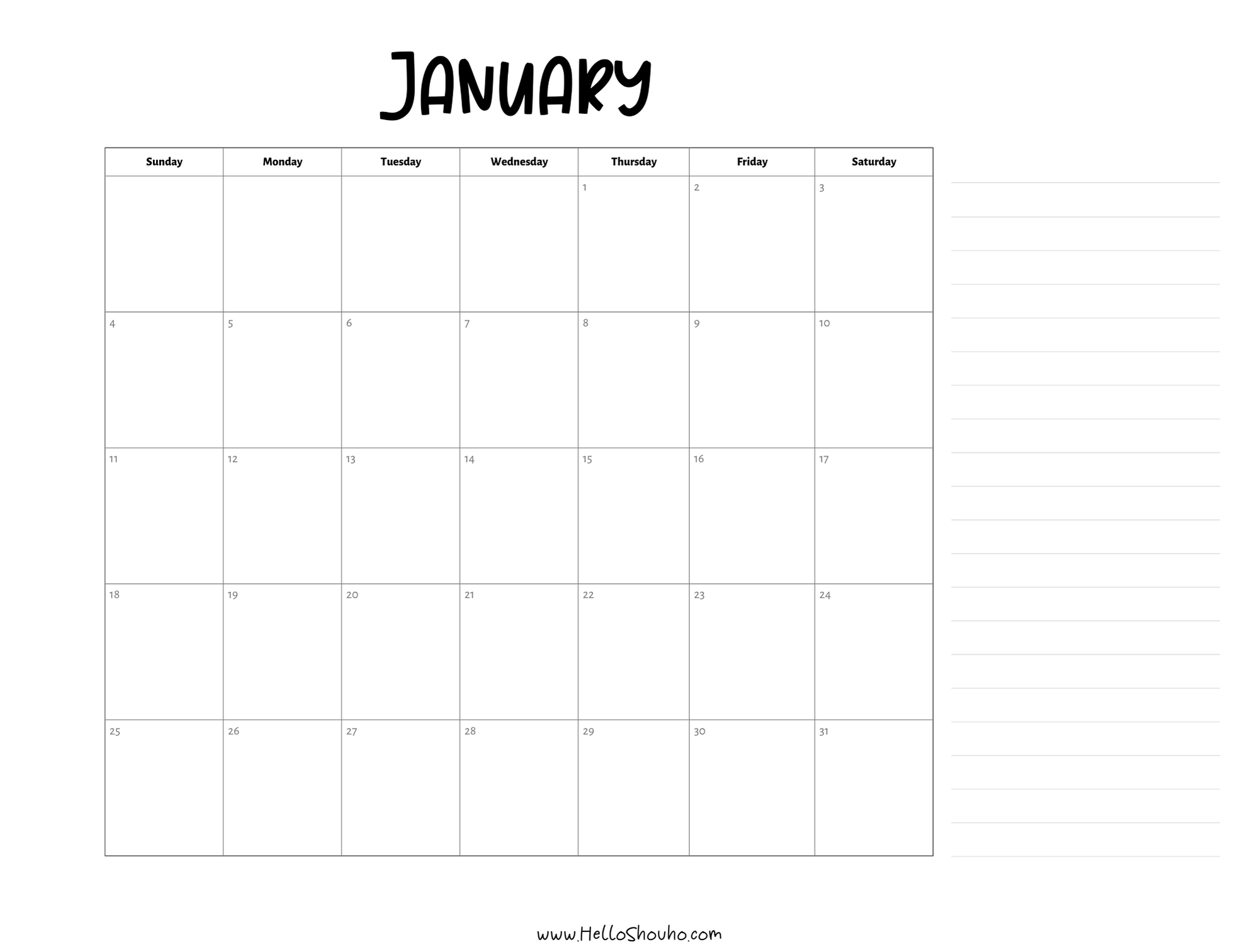 2026 Horizontal Calendars