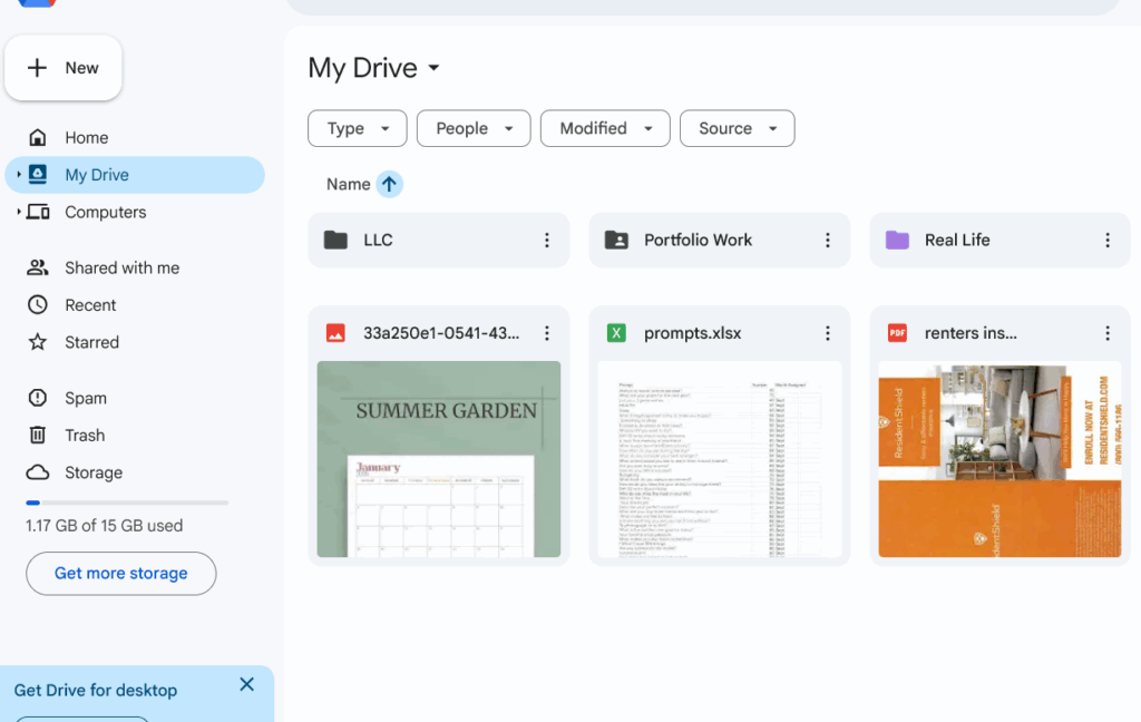As a side note, I dunno if you can turn this off, by default you go into the ‘home’ section of your drive, I hate this, and strictly use the folder section. This spot is the main folder and however you have it setup.