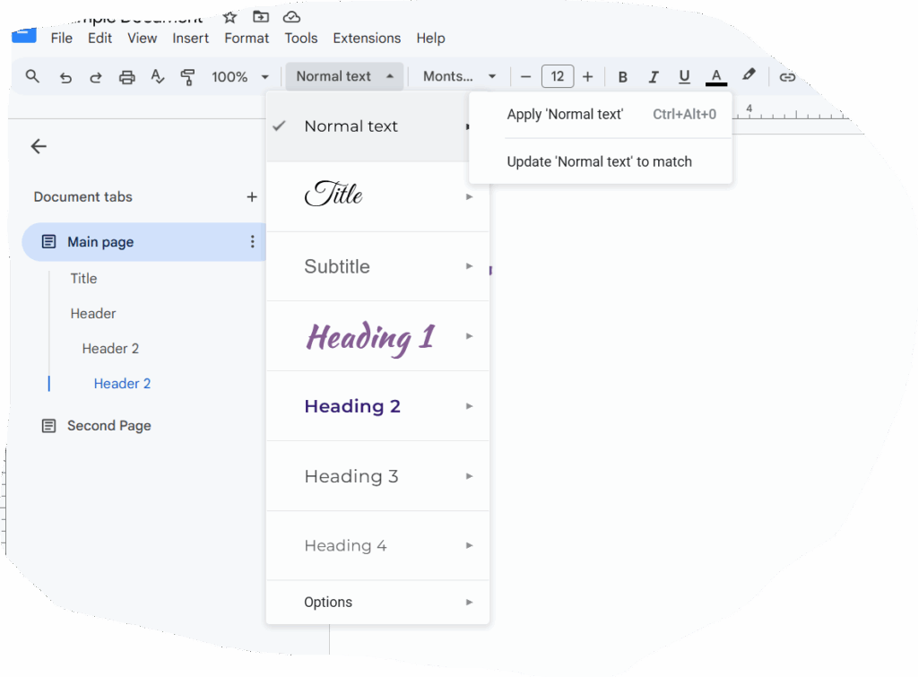 Once you find some you want to play with, or again to start getting setup, make some headers, normal text on the page and you can start assigning them roles. Essentially this will allow you to control the entire page on a whim – want to headers, highlight one, change it and apply to all.
